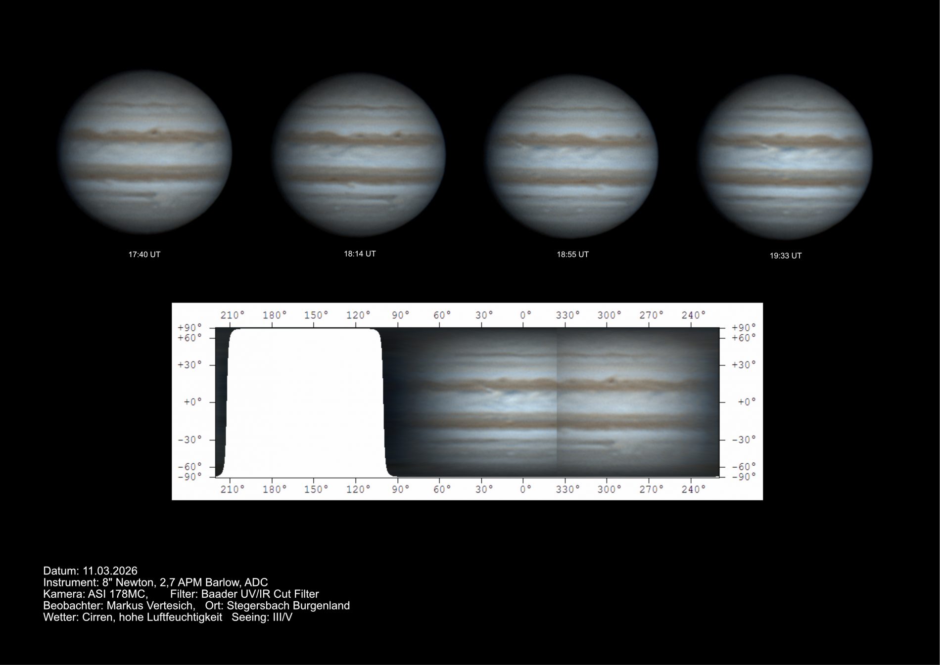 C14 fokal, ASI290MM, Baader R- bzw. CH4-Filter.