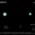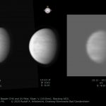 Bei gerade einmal 18 % Beleuchtung ist noch nicht viel Fläche zu sehen. Und trotzdem ließen sich erste Oberflächendetails festhalten. Ins Ergebnis flossen die Stacks aus drei Videos ein, zwei mit der ASI290MM und eines mit der ASI715MC, beide mit IR 685 Filter davor. Das Teleskop wurde weitestgehend durch die Kuppel abgeschattet, was auch ein bisschen Öffnung gekostet hat.