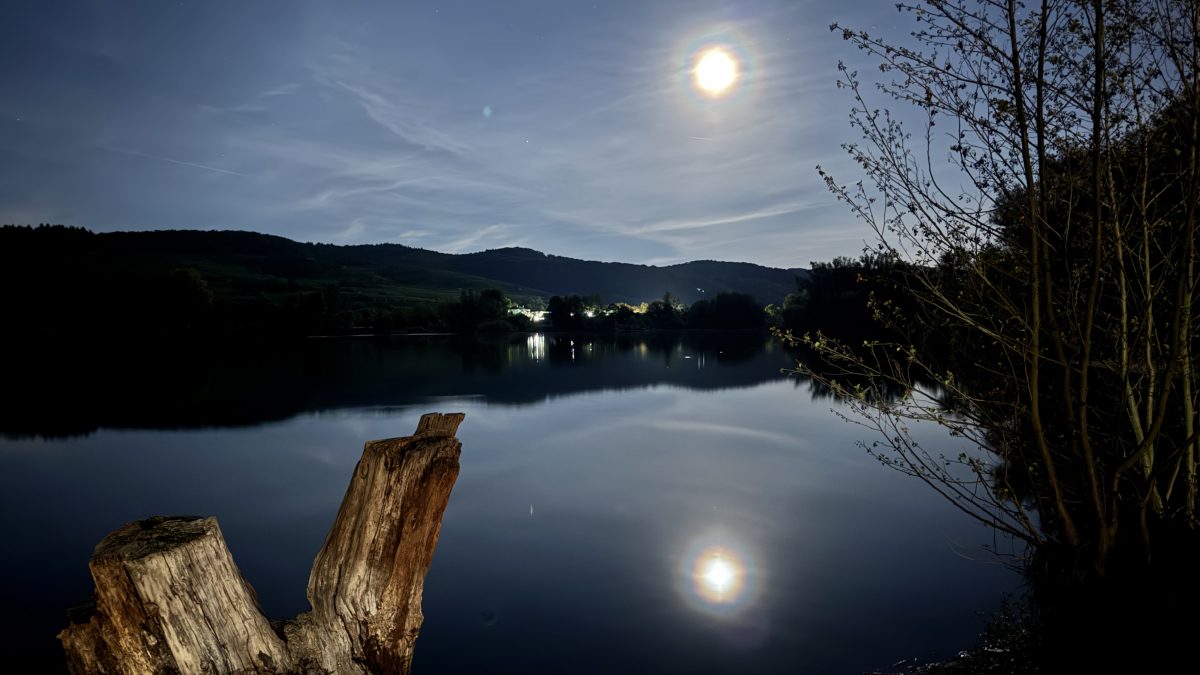 Mond mit Hof und Kränzen kurz vor Ende der partiellen Finsternisphase