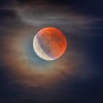 Mond mit Hof und Kränzen kurz vor Ende der partiellen Finsternisphase