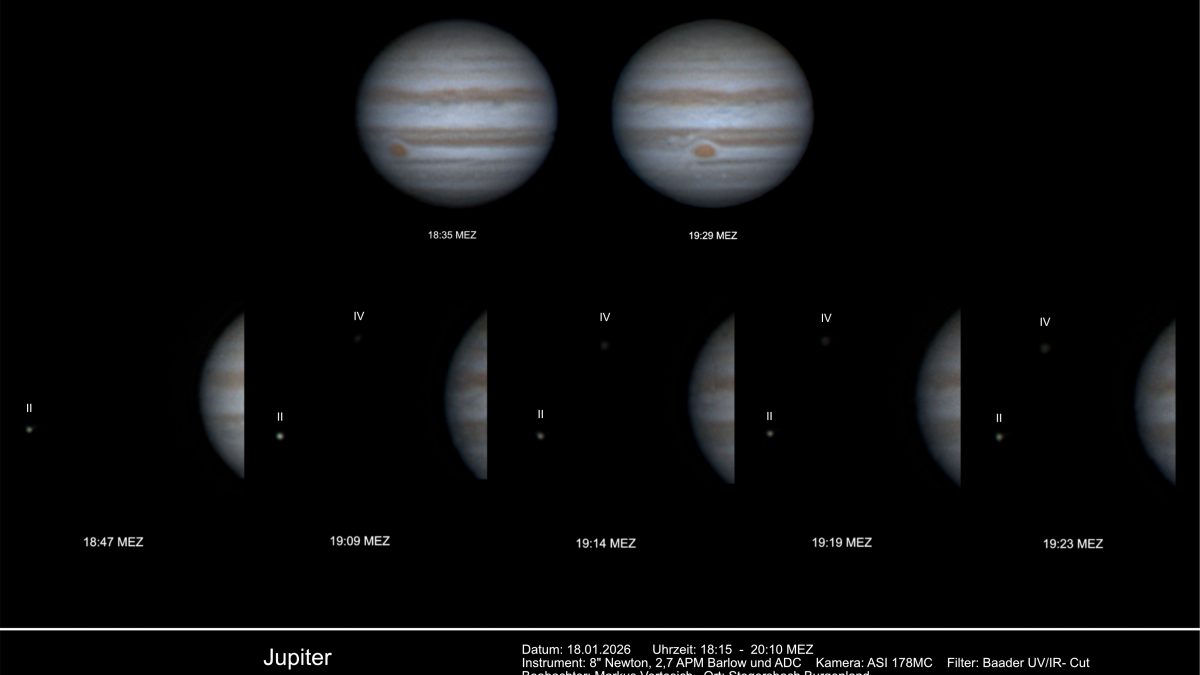 Jupiter 27.12.202527. Dezember 2025Jupiter 18.1.2026 mit Europa18. Januar 2026 18. Januar 2026 Daten im Bild Aufnahmedatum : 18.01.2026Beobachter : Markus Vertesich Share Related posts12. April 2026Jupiter – Vergleich LSW mit Registax und WinjuposRead more29. März 2026Ein kleines Versteckspiel am HimmelRead more19. März 2026ISS begegnet JupiterRead more