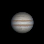 Io schickte sich an, über den westlichen Rand des Jupiter zu ziehen. Bei der letzten Aufnahme waren bereits dünne Wolken da, sodass ich mit höherem Gain die Belichtungszeit noch retten konnte. Kurz nachdem das Dach wieder zu war und die Daten zum Hauptrechner flutschten, prasselte es wieder. Glück gehabt…