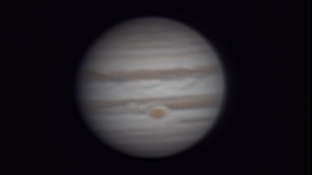 22. Februar 2026Jupiter und der Große Rote Fleck (GRF) bei recht gutem Seeing. Aufnahmedaten: Teleskop Celestron C11 SC XLT – 280/2800mm, Montierung iOptron CEM70G, Brennweite 2.800 mm, Motorfokussierer ZWOptical EAF, Öffnungsverhältnis: 1/10, Kamera ZWOptical ASI 715MC, TS-Optics UV-/IR-Sperrfilter, Belichtung pro Bild: 31,28 ms, Gain: 106 (17%), Bildanzahl: 200 (10%)