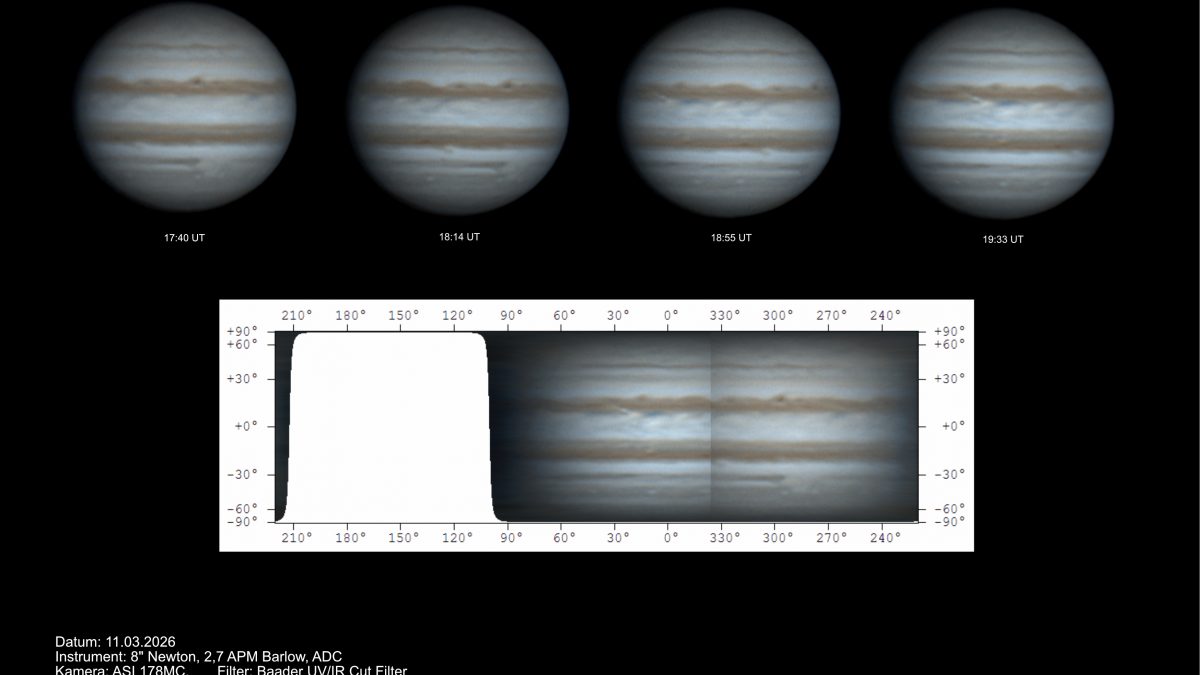 Jupiter 7.3.20267. März 2026 11. März 2026 Jupiter mit Karte Aufnahmedatum : 11.03.2026Beobachter : Markus Vertesich Share Related posts7. März 2026Jupiter 7.3.2026Read more6. März 2026Jupiter vom 6. und 7.3.26Read more6. März 2026Jupiter mit GRFRead more