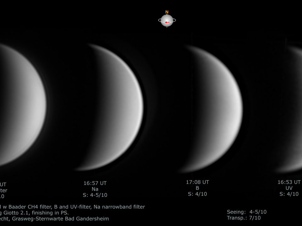 Venus in vier Farbkanälen. Neben Methan und UV diesmal auch Natrium Engband und Blau. Das Aussehen des Planeten ist in jedem Filter marginal anders. Im Blaubild […]