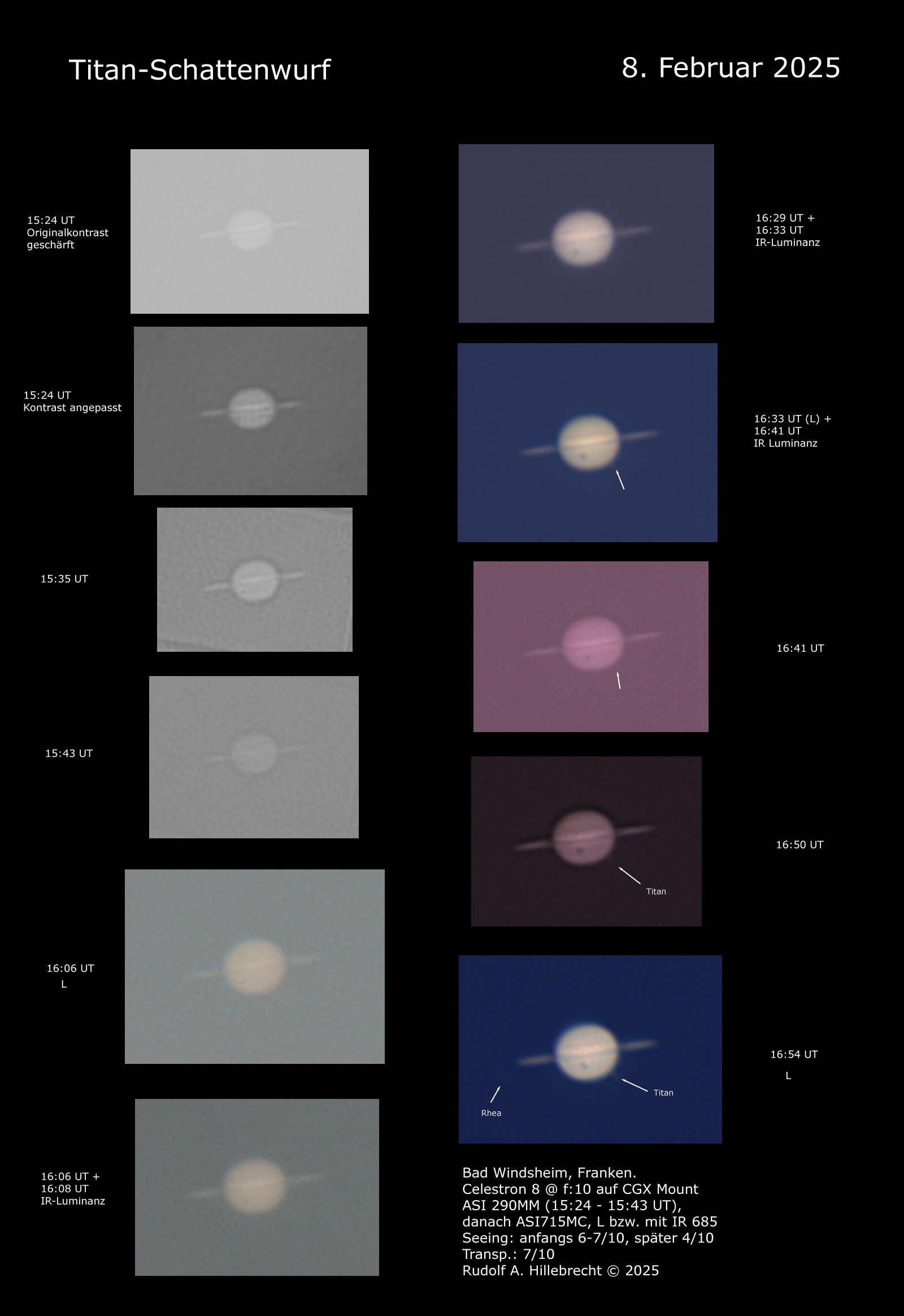 Saturn bei ordentlichem bis gutem Seeing. Ebenso eine Methanbandaufnahme (aus zwei Bildern). Beide zeigen keine Auffälligkeiten. Aufnahmedatum : 12. August 2025Beobachter : Rudolf A. Hillebrecht
